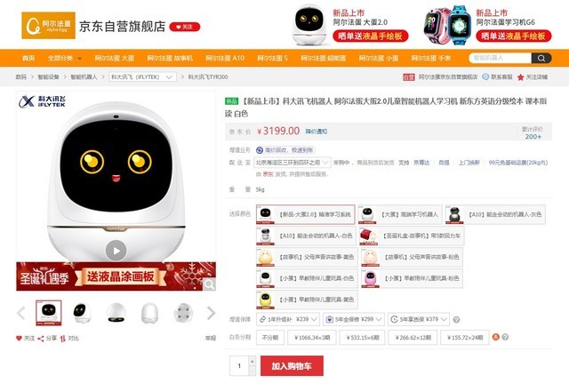 怎么样,看完了阿尔法蛋大蛋2.0的主要功能介绍,作为家长的你是否动心了呢?现在在京东页面下单还能领取10块钱无门槛优惠券,以及京东12期免息日供低至8元,除此之外阿尔法蛋大蛋2.0还拥有1年保修7天无理由退货,7天价保,以及15天免费上门换新活动。关注阿尔法蛋大蛋2.0店铺还能参与抽奖赢取戴森吹风机。3199元就能把一款能够寓教于乐帮助孩子学习成长的智能学习机器人带回家,是不是很划算呢?