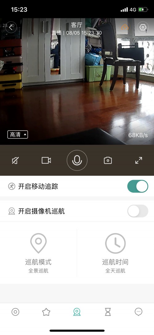 小蚁太空人支持360°云台全景巡航,这个功能对于大户型房间非常使用。比如家中长期没有人,可以在手机App中设置移动巡航,发现异常会及时报警。