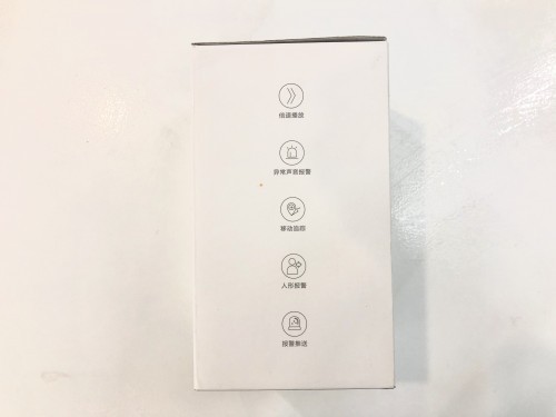 包装侧面印刷了产品的十个卖点——移动追踪、人形报警、异常声音报警、红外夜视等。