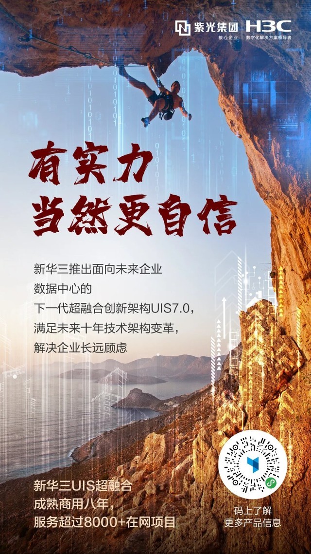 总而言之,算力强、灵活自由、性价比高,同时有力地承载企业新兴业务需求,才是新华三集团底气十足的根源。当然了,这份底气背后,还是源于新华三早在2011年就开启了超融合产品预研,并于2013年10月发布UIS1.0一箱即云解决方案正式进军超融合市场。到目前为止已经成熟商用八年,服务超过8000+在网项目,对云数据中心时代的客户需求积累了丰富的经验与洞察。有实力,当然更自信。