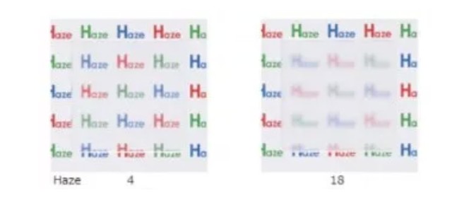 判断透明投影膜的透明性,雾度(Haze)是一个重要的指标。如下图,虽然同为透光率(Tt)是90%以上的产品,但雾度有很大的差别,反映在透明性上也是千差万别。引能仕佳丽得透明投影膜是目前世界上数一数二的能达到雾度为4%的透明投影膜类产品。